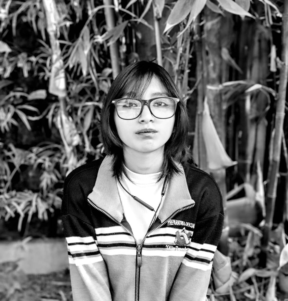 Ameli González (Estado de México, 2008): Estudiante de la Prepa 55, raíz seca de una dalia, escombros en la habitación, artista del crochet y de las flores para intentar ordenar su vida.